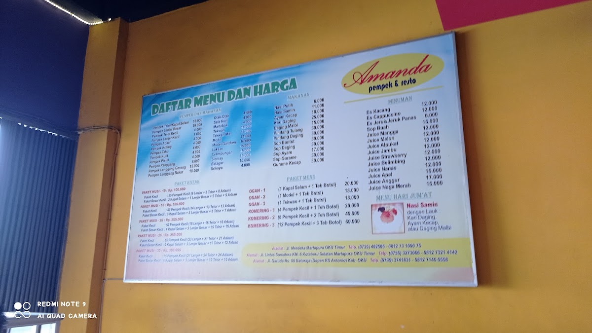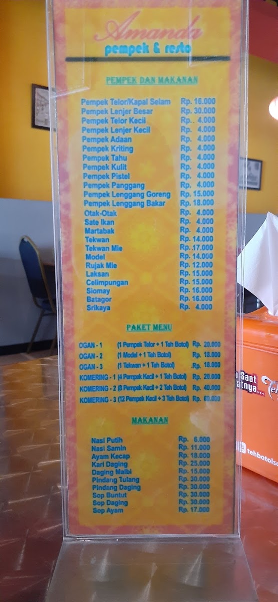 In addition, the refreshing es kacang merah adds a sweet touch to the meal, making it a must-try. As a popular spot, it's no surprise that local patrons frequently stop by, drawn by the restaurant's legendary status in the Martapura area. PEMPEK AMANDA combines a cozy atmosphere with delectable food, creating an unforgettable dining experience that promises to keep you coming back for more!